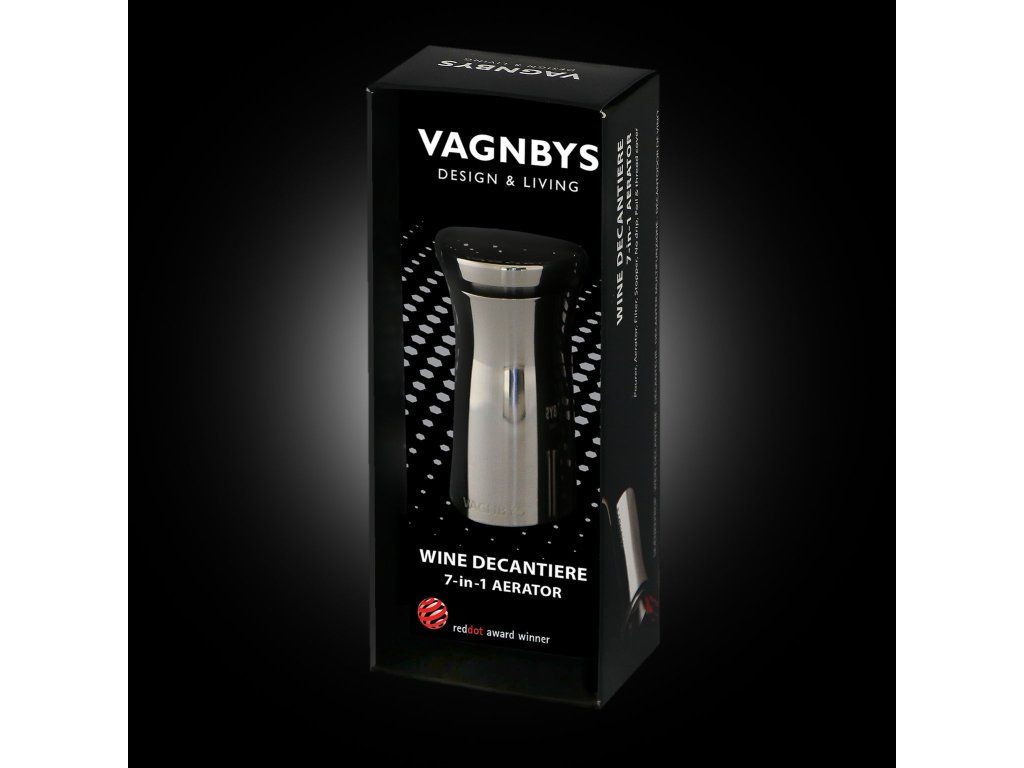 Dekantační nálevka na víno 7v1 Vagnbys – provzdušňovač, filtr, zátka, kryt hrdla (nerez)
