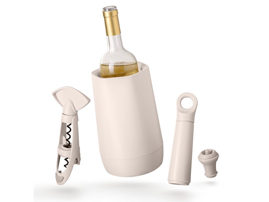 Sada obsahuje chladicí nádobu na víno Hexo s aktivní vložkou, vakuovou pumpičku Loop, vakuovou zátku a otvírák na víno Twister s ergonomickým tvarem. Jedná se o kompletní řešení pro servírování vína.