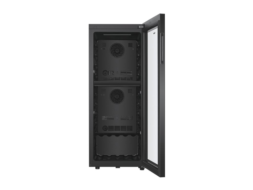 Dvířka jsou vyrobena z temperovaného skla s UV filtrem, který chrání láhve před škodlivým slunečním zářením.